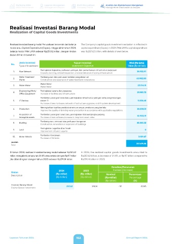 modal atau Capital Expenditure (Capex). Hingga akhir tahun 2024, capital expenditure (Capex). In 2024, PAM JAYA’s capital expenditure