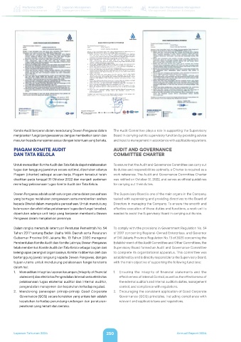 Komite Audit berperan dalam mendukung Dewan Pengawas dalam The Audit Committee plays a role in supporting the Supervisory