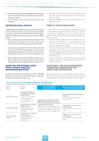 2. Masa jabatan anggota Komite Investasi dan Manajemen Risiko 2. The term of office of members of the Investment and Risk