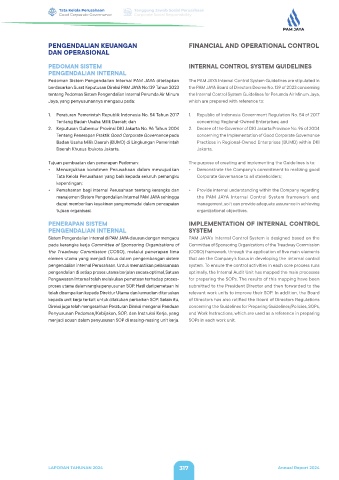 Pedoman Sistem Pengendalian Internal PAM JAYA ditetapkan The PAM JAYA Internal Control System Guidelines are stipulated in