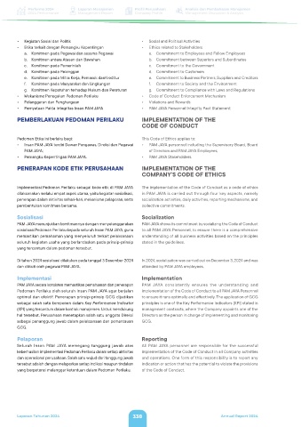 keberhasilan implementasi Pedoman Perilaku dalam setiap aktivitas implementation of the Code of Conduct in all Company activities