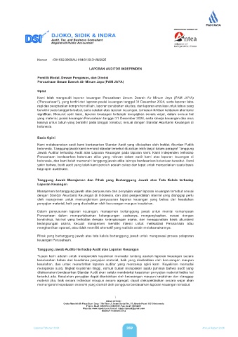 Jawab Auditor terhadap Audit atas Laporan Keuangan pada laporan kami. Kami independen terhadap