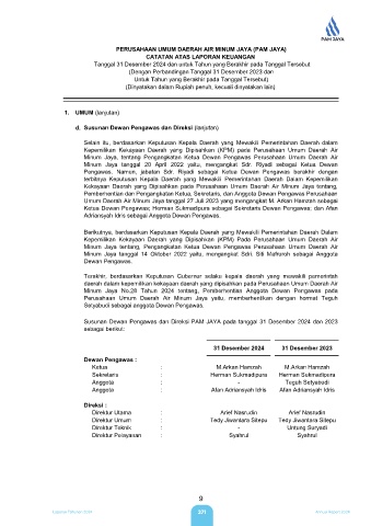 Susunan Dewan Pengawas dan Direksi PAM JAYA pada tanggal 31 Desember 2024 dan 2023