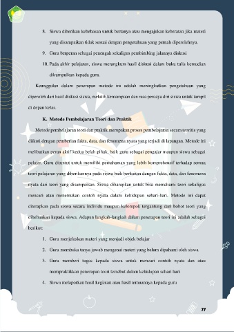 9.  Guru berperan sebagai penengah sekaligus pembimbing jalannya diskusi