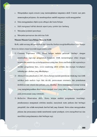 1) Concrete Experience (CE). Siswa belajar melalui perasaan (feeling), dengan