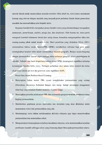 menunjukkan bahwa model Spasial-PBL (SPBL) memberikan referensi bagi guru untuk