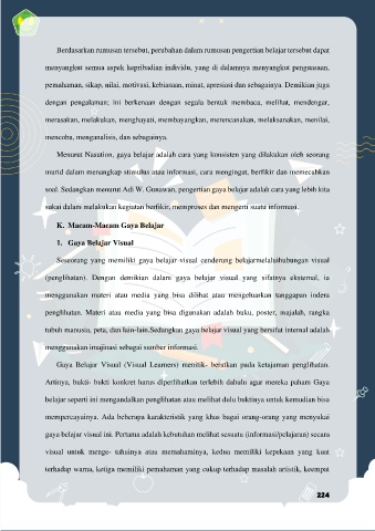 (penglihatan).  Dengan  demikian  dalam  gaya  belajar  visual  yang  sifatnya  eksternal,  ia