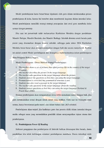 Model pembelajaran memiliki strategi-strategi pencapaian dari awal guru membuka kelas