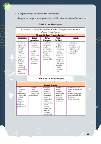 d.  Komputer sebagai instrumen dalam pembelajaran.