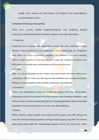 Dalam Active learning, terdapat komponen-komponen yang mendukung kegiatan