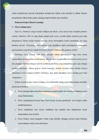 pengajarnya. Dalam project based learning, siswa menerapkan sistem pembelaja- ran yang