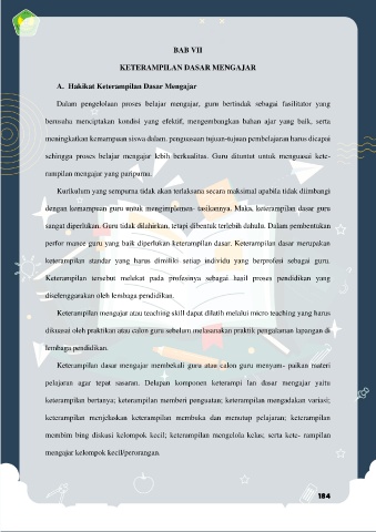 membim bing diskusi kelompok kecil; keterampilan mengelola kelas; serta kete- rampilan