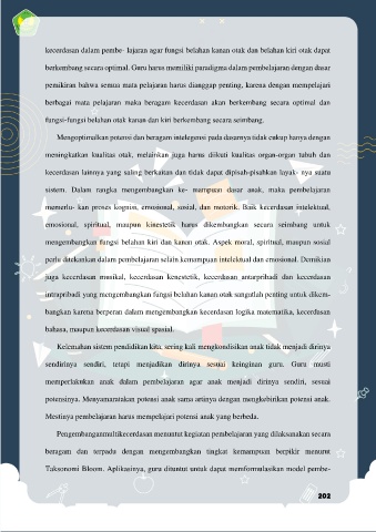 kecerdasan dalam pembe- lajaran agar fungsi belahan kanan otak dan belahan kiri otak dapat