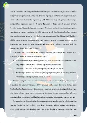 (1996) mengemukakan bahwa evaluasi pada dasarnya adalah merupakan penafsiran atau