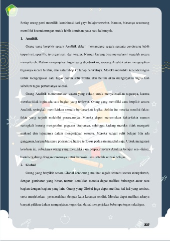 keadaan ini, sebaiknya orang yang memiliki cara berpikir secara Analitik belajar sen- dirian,