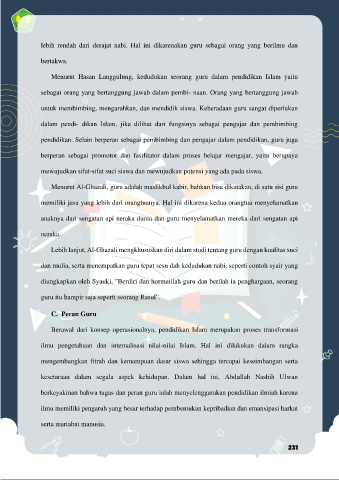 lebih  rendah  dari  derajat  nabi.  Hal  ini  dikarenakan  guru  sebagai  orang  yang  berilmu  dan