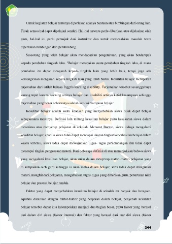 menerima atau menyerap pelajaran di sekolah. Menurut Burton, siswa diduga mengalami