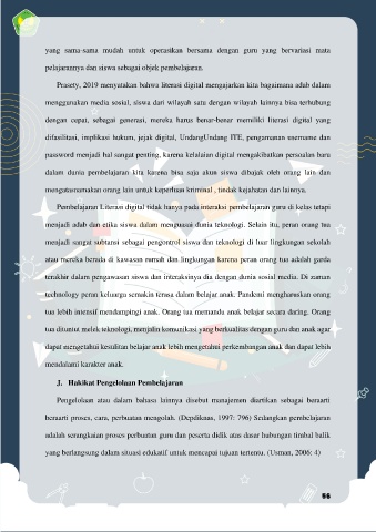 Prasety, 2019 menyatakan bahwa literasi digital mengajarkan kita bagaimana adab dalam