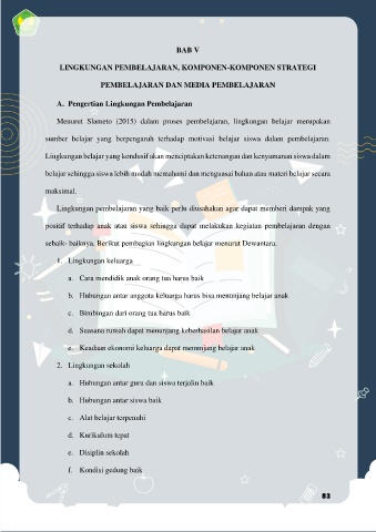 Menurut Slameto (2015) dalam proses pembelajaran, lingkungan belajar merupakan
