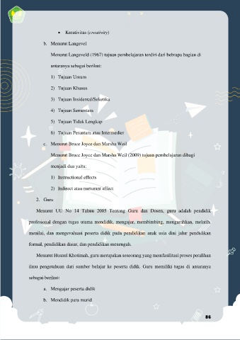 Menurut Bruce Joyce dan Marsha Weil (2009) tujuan pembelajaran dibagi