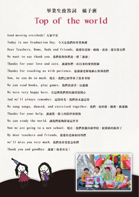 畢業生致答詞 橘子班