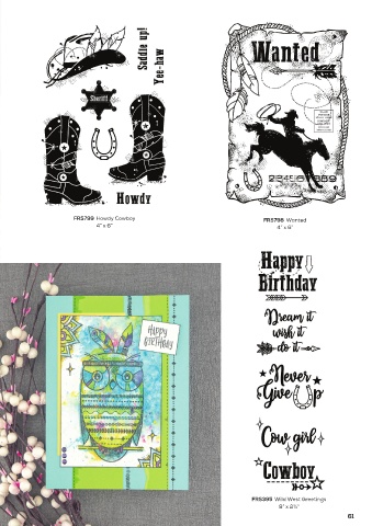 FRS799 Howdy Cowboy FRS798 Wanted 4” x 6” 4” x 6” FRS395 Wild West Greetings 8” x 2¾” 61