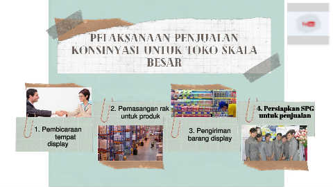 2. Pemasangan rak 4. Persiapkan SPG untuk produk untuk penjualan 1. Pembicaraan 3. Pengiriman tempat barang display display