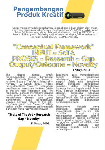 alur yang digunakan yakni “conceptual framework”: INPUT = SoTA, Input