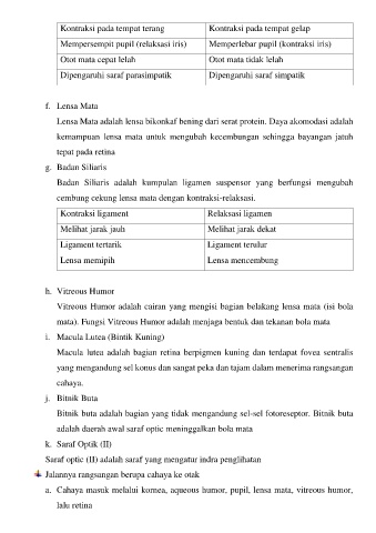 a. Cahaya masuk melalui kornea, aqueous humor, pupil, lensa mata, vitreous humor,