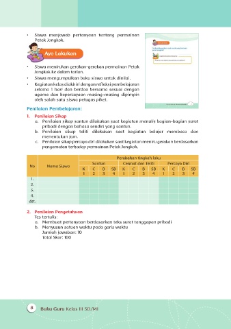 a. Penilaian sikap santun dilakukan saat kegiatan menulis bagian-bagian surat