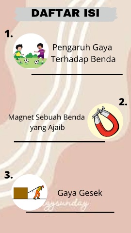 DAFTAR ISI 1. Pengaruh Gaya Terhadap Benda 2. Magnet Sebuah Benda yang Ajaib 3. Gaya Gesek