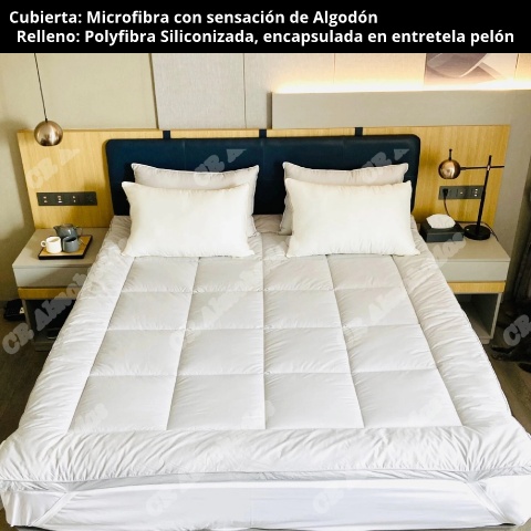 Cubierta: Microfibra con sensación de Algodón Relleno: Polyfibra Siliconizada, encapsulada en entretela pelón
