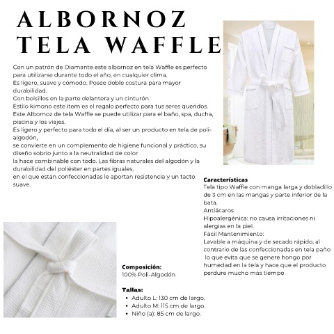 Con un patrón de Diamante este albornoz en tela Waffle es perfecto