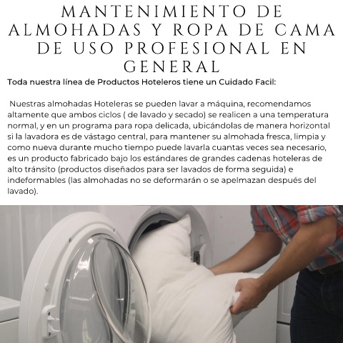 Nuestras almohadas Hoteleras se pueden lavar a máquina, recomendamos
