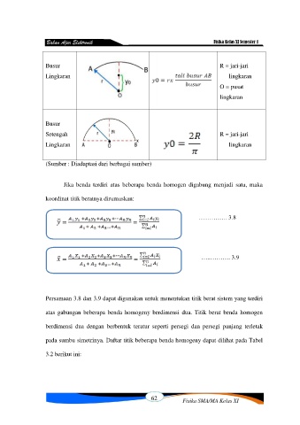 Persamaan 3.8 dan 3.9 dapat digunakan untuk menentukan titik berat sistem yang terdiri