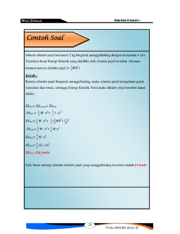 Jadi, besar enenrgi kinetik silinder pejal yang menggelinding tersebut adalah 24 Joule