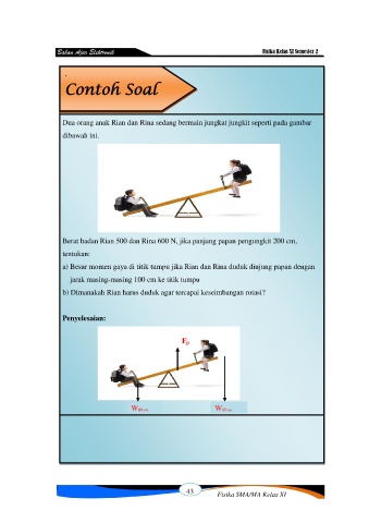 Berat badan Rian 500 dan Rina 600 N, jika panjang papan pengungkit 200 cm,