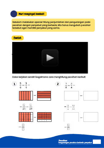 Pengurangan pecahan berbeda penyebut