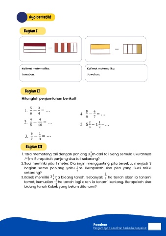 bagian sama panjang yaitu m. Berapakah sisa pita yang Suci miliki