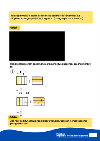 Kita dapat menjumlahkan pecahan jika pecahan-pecahan tersebut
