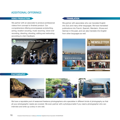 We partner with associates who can translate English into Zulu and many other languages. We have translated publications into French, Spanish, Mandarin, Xhosa and German in the past, and can also translate into English from other languages as well.