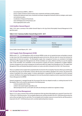 Table 3.13.8.1 gives a summary of the Auditor-General’s Report on the Ugu District Municipality Financial Management of the past three years.