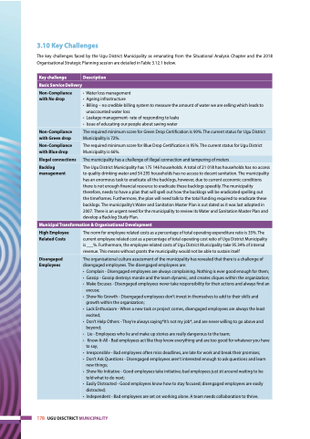 The key challenges faced by the Ugu District Municipality as emanating from the Situational Analysis Chapter and the 2018 Organisational Strategic Planning session are detailed in Table 3.12.1 below.