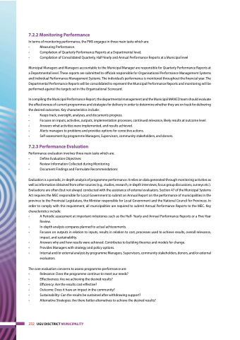 In compiling the Municipal Performance Report, the departmental management and the Municipal MANCO team should evaluate the effectiveness of current programmes and strategies for delivery in order to determine whether they are on track for delivering the desired outcomes. Key characteristics include: