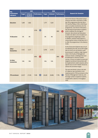 be processed. In addition, high dropout rates in the Faculty of Management Sciences remain a challenge that must be addressed to enhance student success. A focus on student success and targeted recruitment interventions will be implemented in 2025 onwards, with a specific focus on DUT Feeder Schools to achieve the enrolment target.