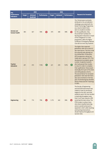 and the Built Environment was unable to meet its enrolment targets for the 2021 and 2022 academic years; this has resulted in declining throughput rates that in turn have caused a 24% overall performance drop. The FTEN student numbers have since been steadily improving, and an overall turnaround is expected in 2027, while teaching and learning interventions should improve throughput and success rates.