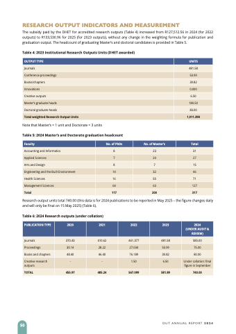 The subsidy paid by the DHET for accredited research outputs (Table 4) increased from R127,512.56 in 2024 (for 2022 outputs) to R133,530.96 for 2025 (for 2023 outputs), without any change in the weighting formula for publication and graduation output. The headcount of graduating Master’s and doctoral candidates is provided in Table 5.