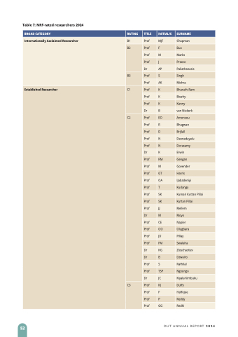 Table 7: NRF-rated researchers 2024