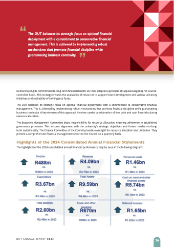 The DUT balances its strategic focus on optimal financial deployment with a commitment to conservative financial management. This is achieved by implementing robust mechanisms that promote financial discipline while guaranteeing business continuity.