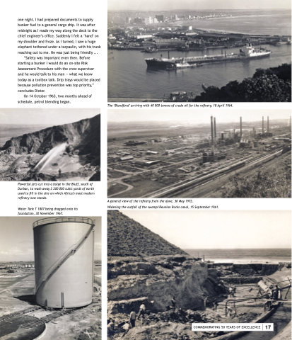 “Safety was important even then. Before starting a bunker I would do an on-site Risk Assessment Procedure with the crew supervisor and he would talk to his men — what we know today as a toolbox talk. Drip trays would be placed because pollution prevention was top priority,” concludes Dieter.